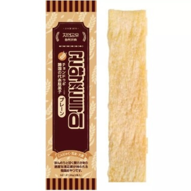 韓国駄菓子の代名詞、”思い出の味”チョンドゥギが蒟蒻入りで健康的なお菓子に大変身!チョンドゥギの名前にもある「チョンドゥッチョンドゥッ」とは、韓国語で弾力のある様を表現した言葉。揚げてないのでさっぱりしていてほんのりした甘さが特徴。子供のおやつはもちろん、お酒のつまみ・ダイエット中のおやつとして大人にも人気のお菓子!焼いて食べると香ばしい香りと甘みが倍増し、噛めば噛むほど味わいが広がります。 4562137223524