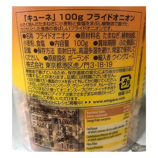 新鮮な玉ねぎをカットし、小麦粉と食塩を加え、植物性オイルでローストし、クリスピーな味わいに仕上げています。ステーキ、ソーセージ、魚料理にマッシュポテトとともに、またスナックとしてもお召し上がり頂けます