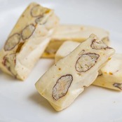 やわらかいヌガーに練りこまれたアーモンドの食感がアクセント。