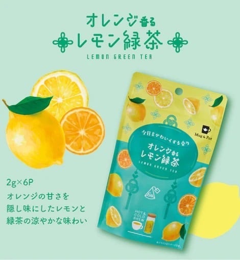 オレンジの甘さを隠し味にしたレモンと緑茶の涼やかな味わいが特徴です。