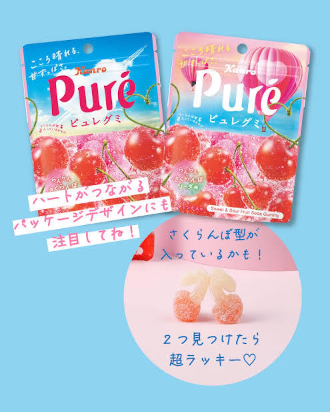 甘ずっぱいさくらんぼ×爽やかソーダの見た目もかわいい組み合わせ!春のうきうきする気持ちに寄り添う、ハッピーなピュレグミ。