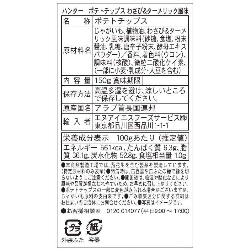 HUNTERのポテトチップスから、わさび&ターメリック風味がラインアップ。スパイシーなワサビと、パンチのあるターメリックの個性の強いフレーバー同士を合わせた新しい美味しさがやみつきに!日本初上陸のフレーバーです