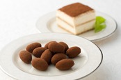 カリッと香ばしいキャラメルコートアーモンドに、濃厚なマスカルポーネを合わせ、きな粉でほんのり和の味わいに仕上げました。ひと粒で和と洋のとけ合うおいしさが広がります。