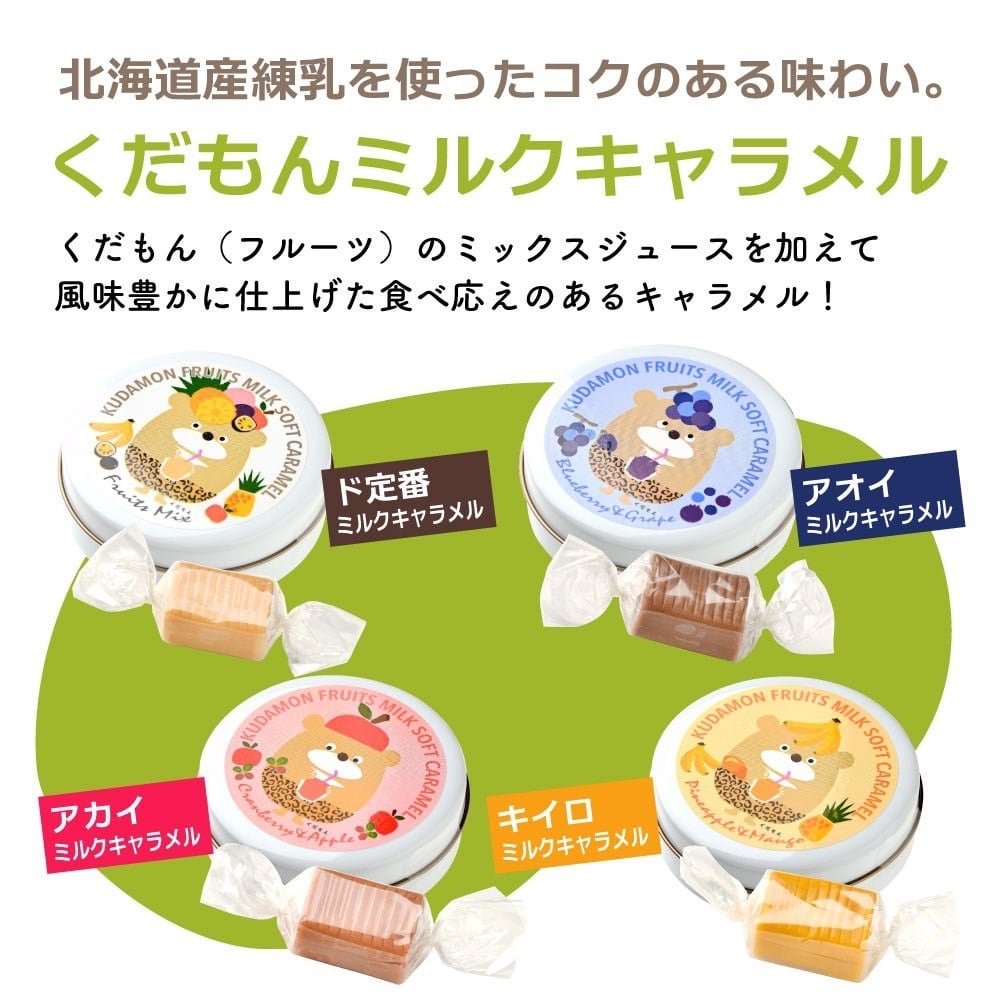 くだもん(フルーツ)のミックスジュースを加えて風味豊かに仕上げた食べ応えのある大きめのキャラメル!