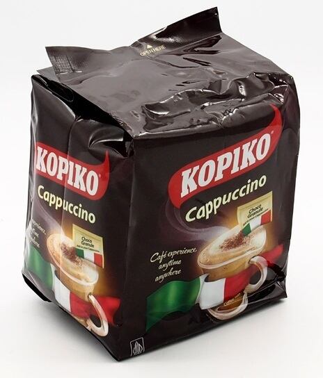 コーヒーミックス(砂糖、ぶどう糖シロップ、植物油脂、全粉乳、インスタントコーヒー)、トッピング(砂糖、麦芽エキス、脱脂粉乳、ココアパウダー、ぶどう糖シロップ、植物油脂)/香料、安定剤(リン酸ニカリウム、ポリリン酸ナトリウム)、乳化剤、カゼインナトリウム、微粒二酸化ケイ素