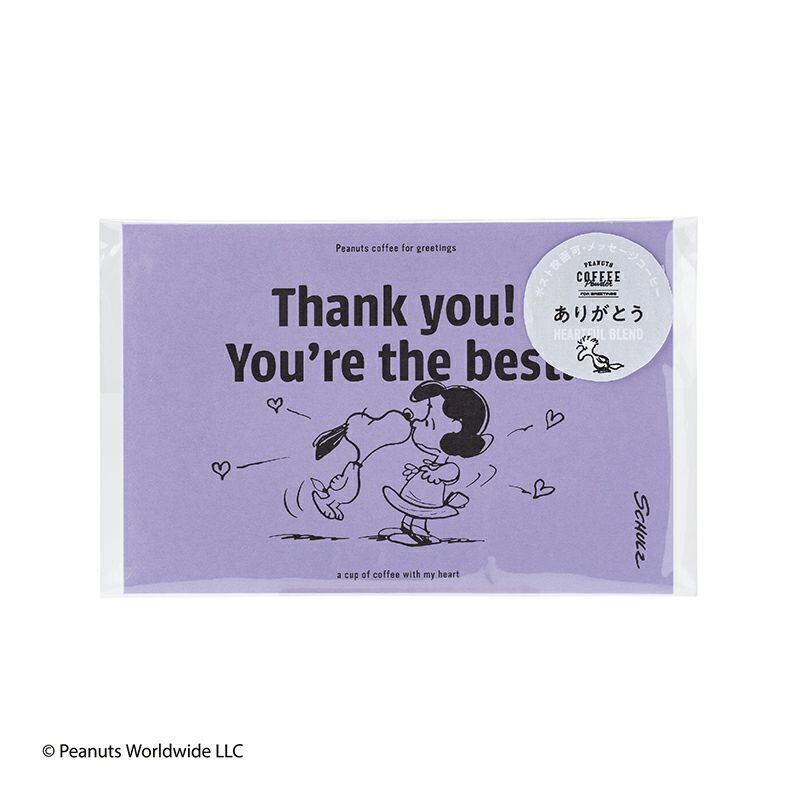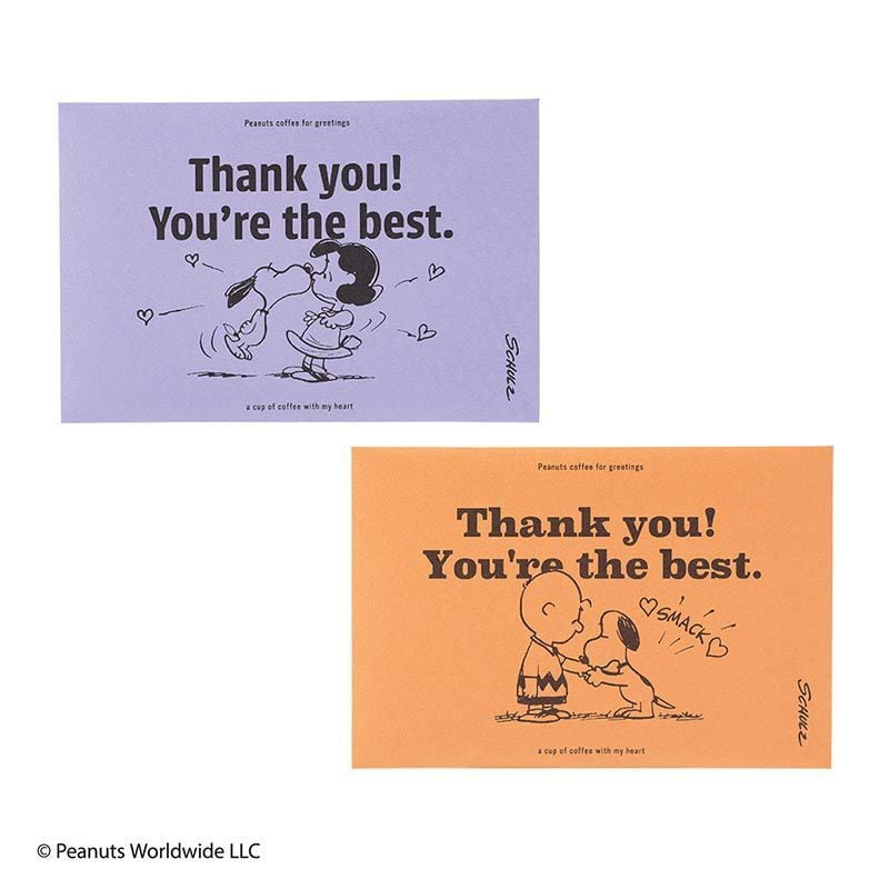 飲み方が書かれた可愛らしいスヌーピー柄のコースター入りで、受け取った人のコーヒータイムをより楽しく彩るでしょう。