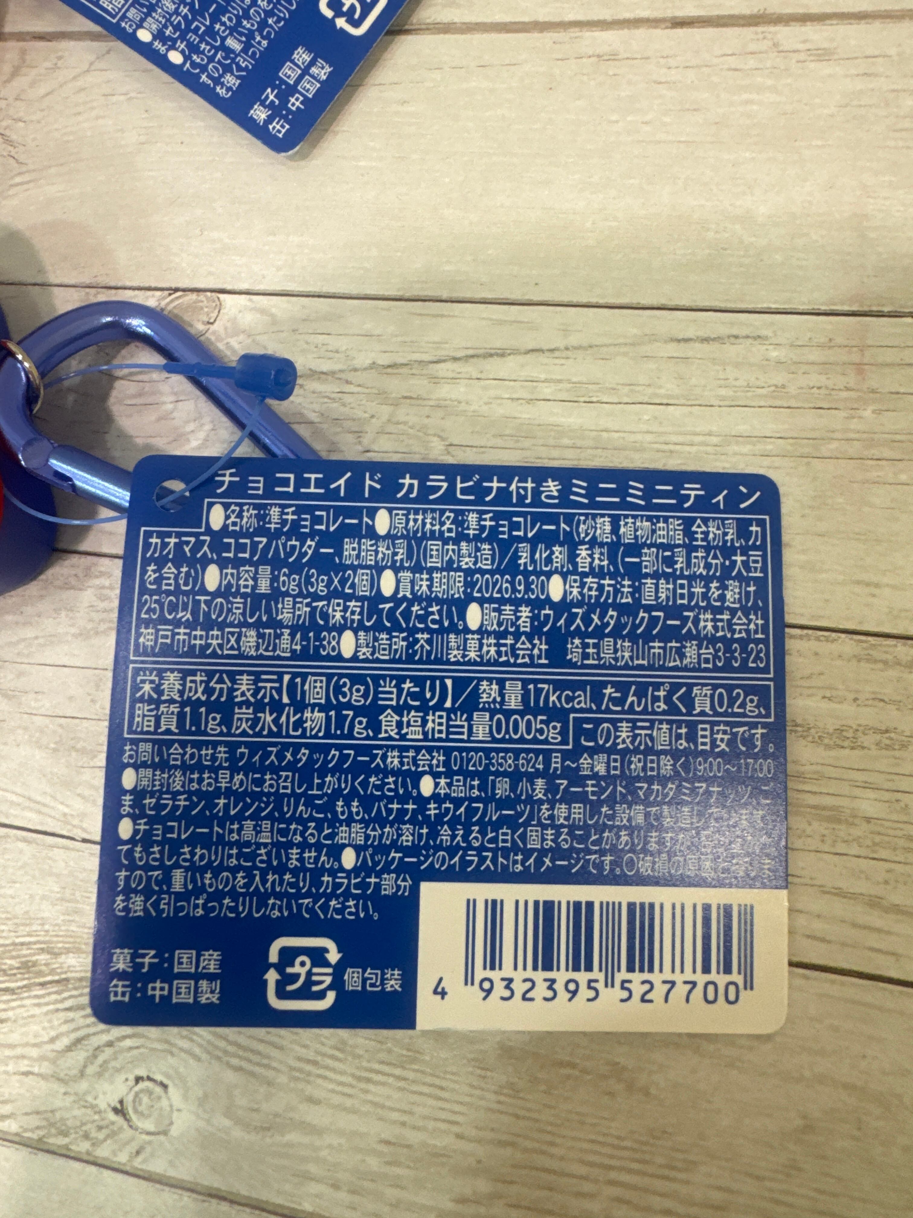 中にはミルク味のミニバンソウコウチョコレートが入っているミニミニサイズのチョコエイドティンが登場!