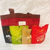 お洒落な手提げバックの中に、リンドール3個入の製品を4種類、各1袋ずつ詰合せしております。