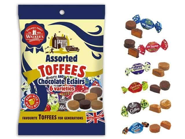 ミルクチョコカバー、ダークチョコカバー、ミルクチョコエクレア、コーヒー、チョコ、ソルトキャラメル。イギリスの伝統菓子タフィー6種をバラエティ豊かに詰め合わせました。10個入り。