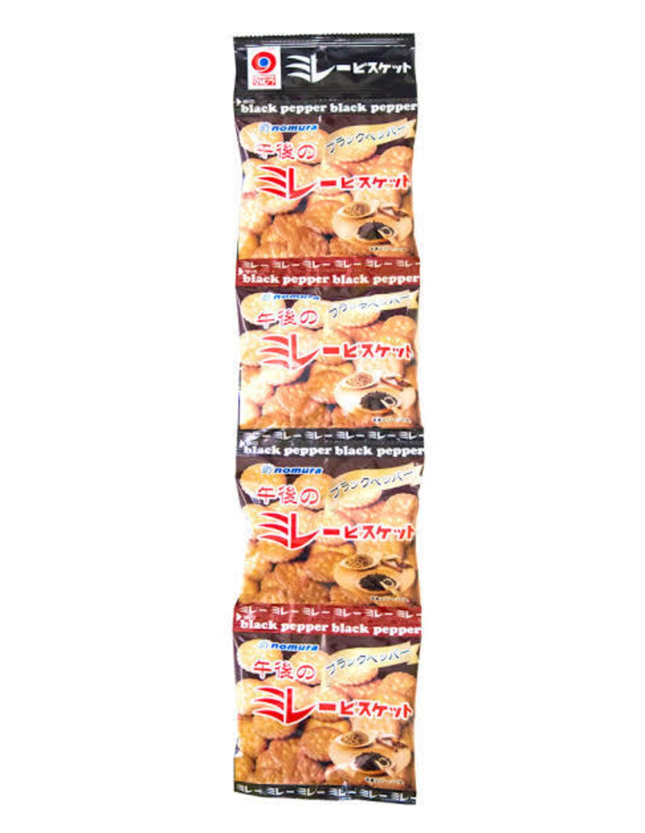高知県民なら誰もが知っている、ほんのり甘くて、どこか懐かしい優しい味が人気の土佐の野村煎豆加工店・ミレービスケットです。 こちらの午後のミレービスケットは、ブラックペッパー風味のビスケットです。