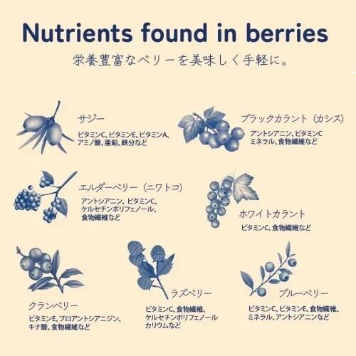 原材料名:ラズベリー、ブルーベリー、砂糖、クランベリー、ローワンベリー、シナモンエキス
