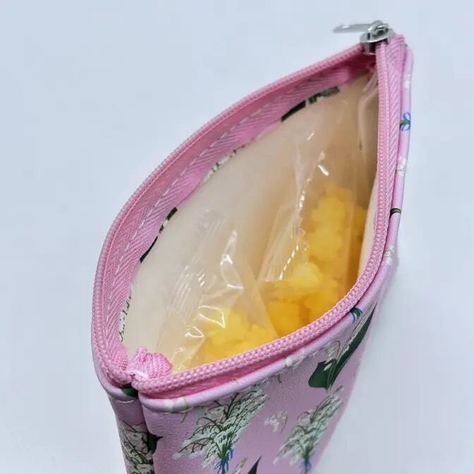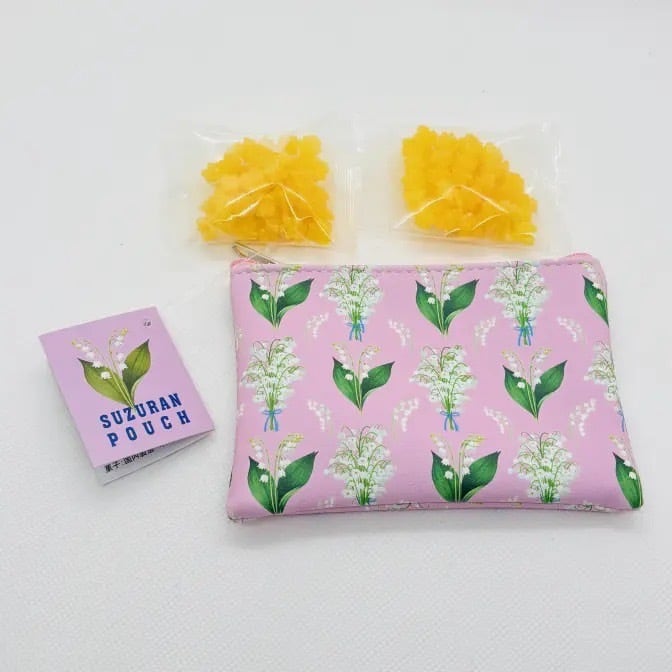 スズラン柄のポーチの中に<レモンコンペイトウ>を2袋入れました。