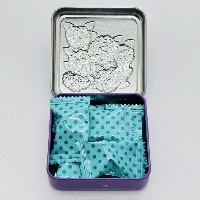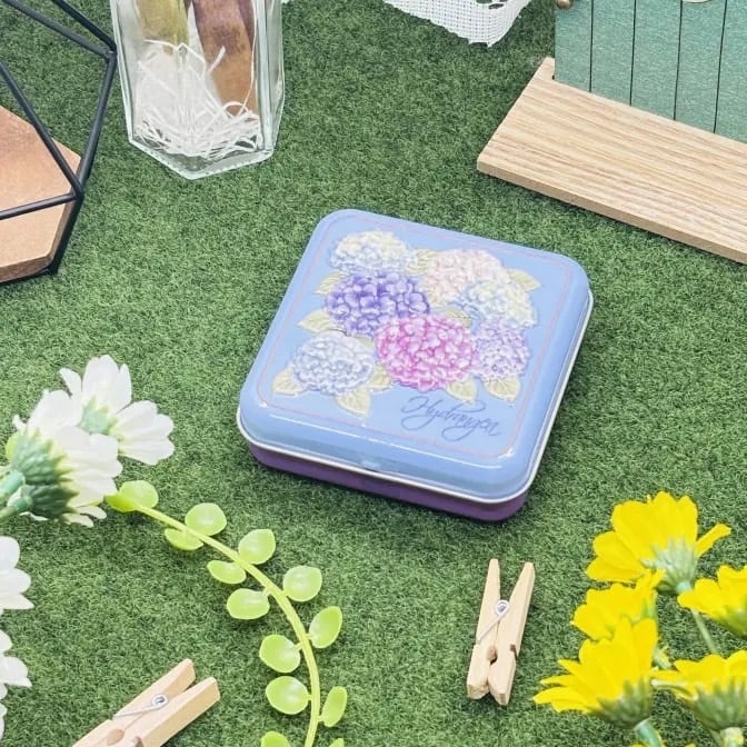 紫陽花柄のミニ缶です。中にパイナップル風味のキャンディが6個入っています。
