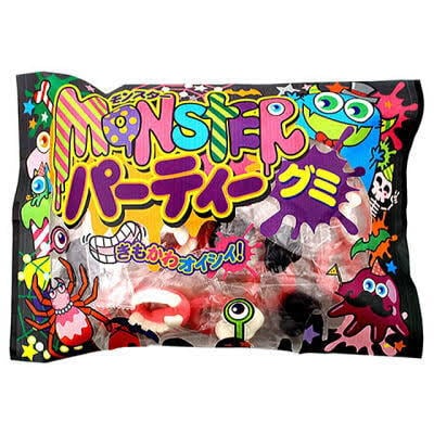 グミの種類は個包装された6種類、見て楽しく、食べておいしい、ハロウィンシーズンにはもちろんの事、様々なシーンでモンスターパーティグミがあれば盛り上がること間違いなし!
