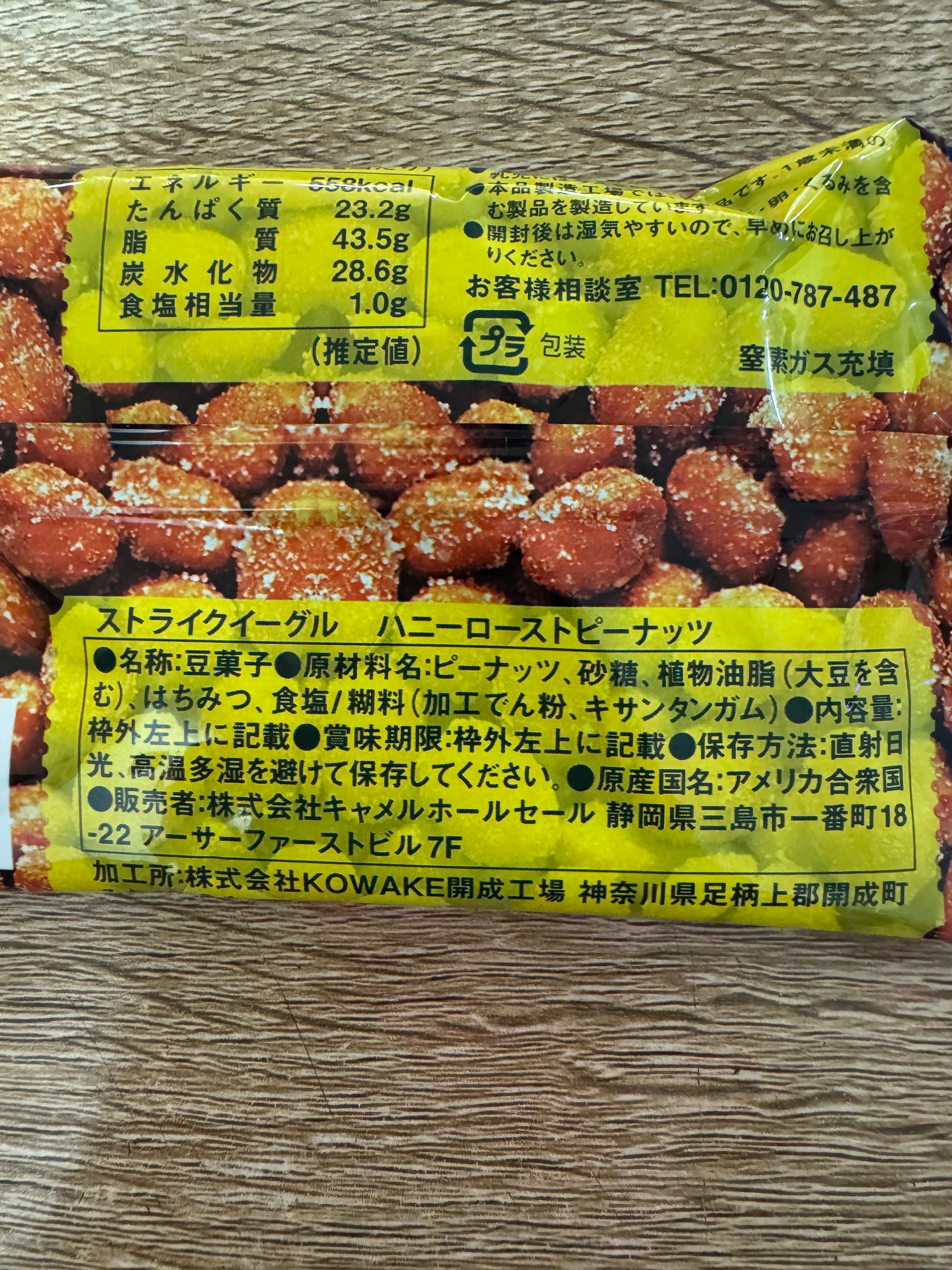 一度食べたら、やみつきになるハニーローストピーナッツ。おやつやお酒のお供に最適です。 ピーナッツはアメリカ産の良質な味の良い、遺伝子組み換えをしていない物を使用しています。 ハニーローストは、ピーナッツ本来の甘みやローストによる香ばしさが最良になる様じっくりローストし、日本人の味覚にあわせた蜂蜜、砂糖、塩を絶妙に配分し、おいしさを最大限に引き出しています。
