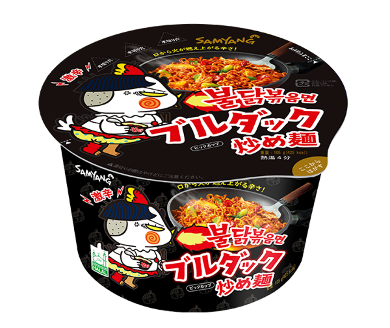 油揚げめん(小麦粉、植物油脂、小麦グルテン、食塩、玉ねぎエキス)、スープ(しょうゆ、砂糖、チキン風味シーズニング、チキン風味パウダー 、唐辛子シーズニング、唐辛子加工品、大豆油、玉ねぎ、唐辛子、香味食用油、チキン風味パウダー、にんにく、こしょう、カレーシーズニングパウダー、乳酸菌発酵粉末)、かやく(ごま、海苔)/糊料(加工デンプン、グァーガム)、調味料(アミノ酸等)、かんすい、着色料(パプリカ色素、V.B2)、香辛料抽出物、乳化剤、微粒二酸化ケイ素、酸化防止剤(V.E、カテキン)、甘味料(キシロース、ステビア)、香料、pH調整剤、(一部に小麦・卵・乳成分・大豆・ごまを含む)