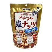 原材料:アーモンド(アメリカ産)、カシューナッツ、落花生、マカダミアナッツ、調味油、ハーブ&スパイスミックス調味料(岩塩、ペッパー、オニオン、ガーリック、タイム、セロリー、オレガノ)、植物油脂/調味料(アミノ酸)、(一部に落花生・アーモンド・カシューナッツ・大豆を含む)