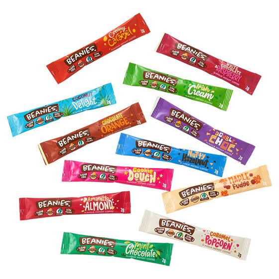 イギリス生まれのフレーバーインスタントコーヒー「BEANIES(ビーニーズ)」から、バラエティパックがラインアップ。人気の12種類のフレーバーが楽しめる、スティック状のインスタントコーヒーセットです。カラフルなパッケージでギフトにもおすすめです!