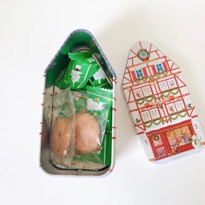 ストロベリー風味のクッキー2個とレモン風味のキャンディが5個入っています。