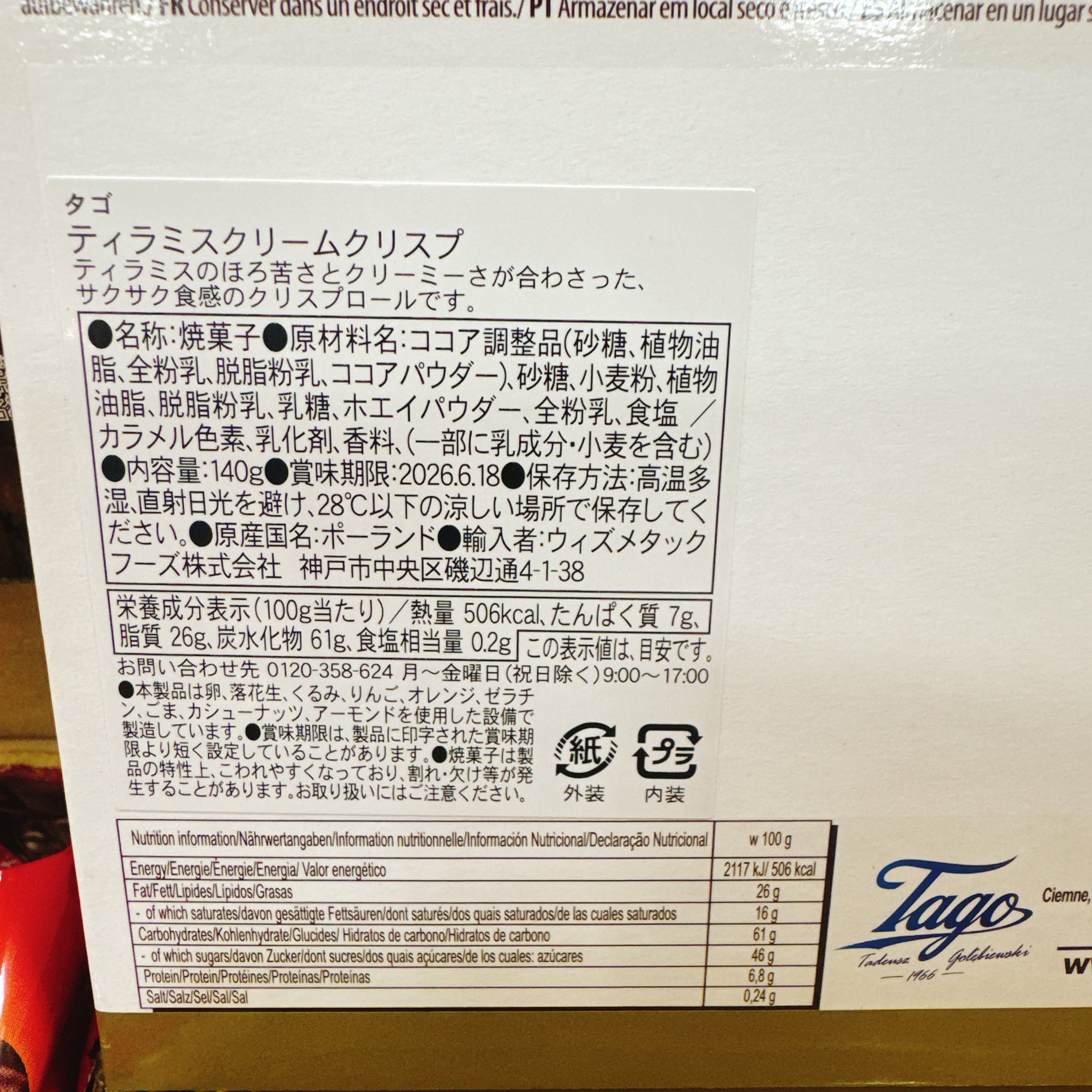 タゴ ミルクチョコクリスプ ティラミスクリーム