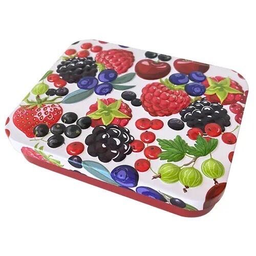ベリーをあしらいエンボス加工したミニ缶です。