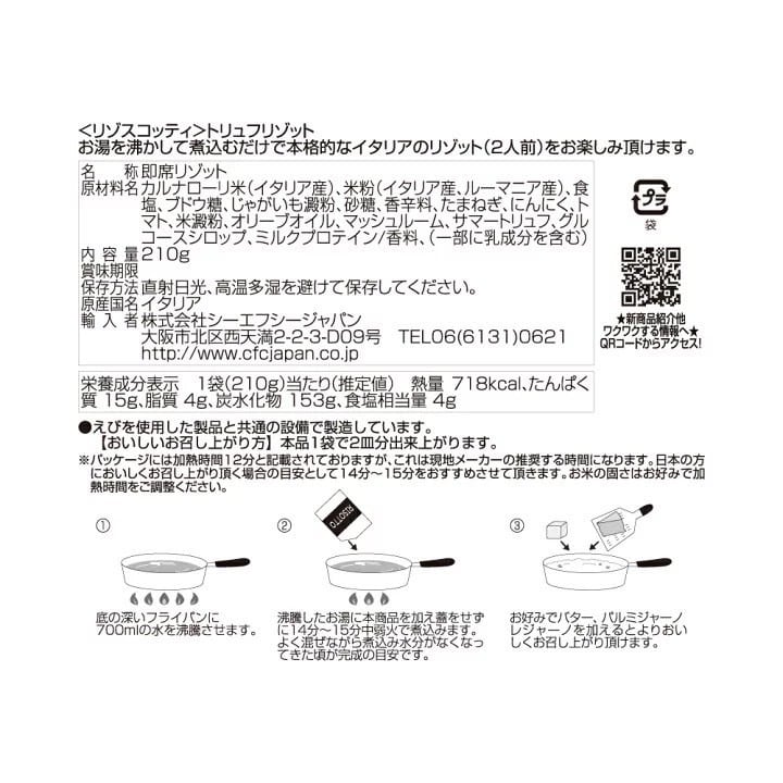 フライパンとお湯があれば約14分で本格的な味わいのリゾットがご家庭で楽しめます。