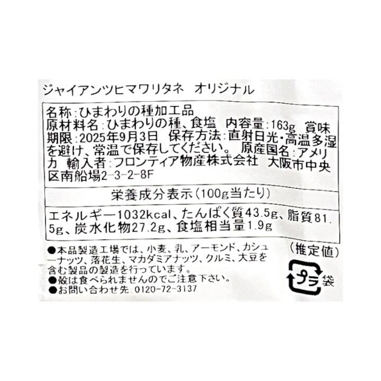 待望の再入荷!数量限定!ジャイアンツ サンフラワーシード オリジナル 163g