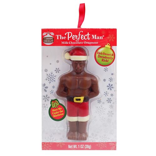 サンタのコスチュームを着た完璧ボディの『Perfect Man』チョコレートにリボンが付いたオーナメントです。クリスマスツリーの飾りにぴったりです。