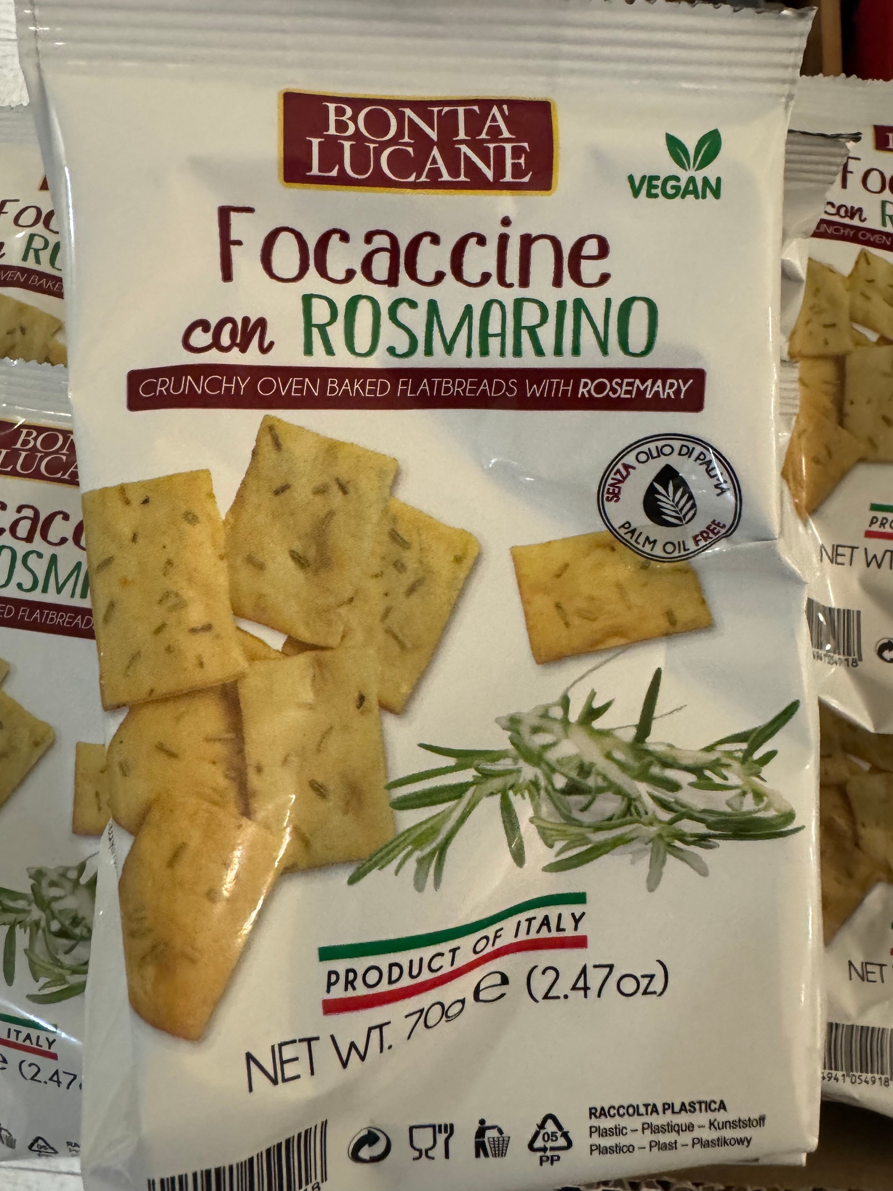 ローズマリーの香り爽やかで、ほんのりと塩気があります。パリッとした食感で、クリームチーズのようなフレッシュチーズや生ハムをのせるだけで美味しいおつまみが出来上がります。