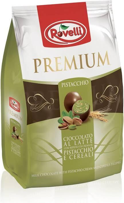 ●ROVELLI ピスタチオは柔らかいミルク チョコレートと香り豊かなピスタチオ クリーム、カリカリとしたブランのユニークな組み合せです。