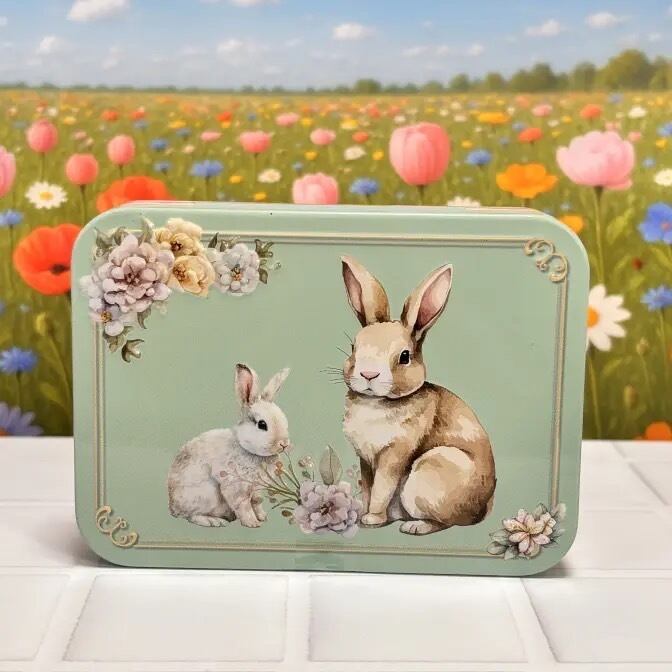 ウサギをデザインし、エンボス加工を施したミニ缶です。